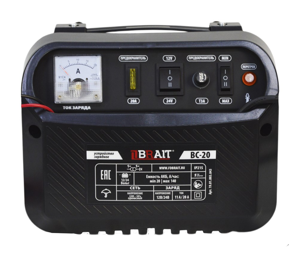 Устройство зарядное BC-20 (Напряжение 12/24В, емкость 20-140А/ч, сеть 220В-50Гц, ток 11А/20А) 75шт/90шт/поддон