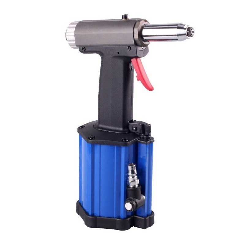 Time-proof N250 относится к линейке промышленных инструментов и предназначен для больших объемов работ. Вес инструмента составляет всего 1,40 кг, при этом обладает хорошей силой вытягивания от 10300 Н до 14420 Н и работает при давлении сжатого воздуха в 5-7 бар. Штуцер подключения вращается на 360 градусов, что позволяет работать заклепочником в любом положении. Рабочий ход инструмента составляет 19 мм. Длина наконечника составляет 69 мм, диаметр 23 мм.